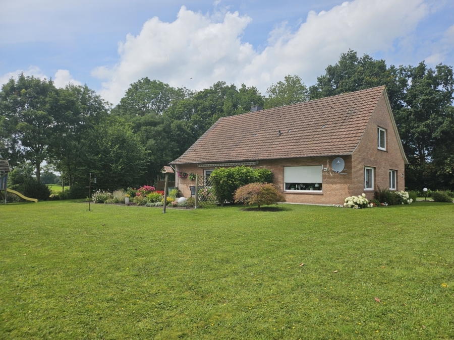 In absoluter toller Wohnlage, am Stadtrand von Leer gelegen, wurde dieses ursprünglich um 1900 erbaute Wohnhaus in den Jahren 1978/79 kernsaniert und umgebaut. Seitdem stehen ca. 175 m² Wohnfläche zur Verfügung, die sich auf großzügige und gut nutzbare 6 Zimmer verteilen.