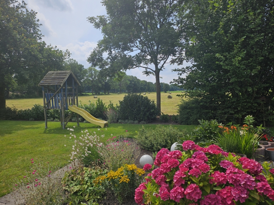 Das Grundstück mit einer Gesamtgröße von ca. 1.730 m² ist trotz seiner Größe pflegeleicht und sehr gepflegt angelegt – freie Sicht rund um das Grundstück herum lässt den Traum der nahezu Alleinlage wahr werden. Als Nebengebäude steht eine Doppelgarage mit separatem Werkstattbereich zur Verfügung, hier ist der Austausch der Flachdachabklebung erforderlich.