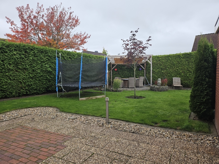 Außen bietet das Grundstück ein rundum gelungenes Freizeit- und Lebensgefühl: Eine großzügige Freiterrasse lädt zum Sonnenbaden oder geselligen Grillabenden ein, während die überdachte Terrasse Schutz bei wechselhaftem Wetter bietet. Das ca. 680 m² große Gartengrundstück ermöglicht Spielraum für Kinder, Gartenfans oder individuelle Gestaltungsideen.