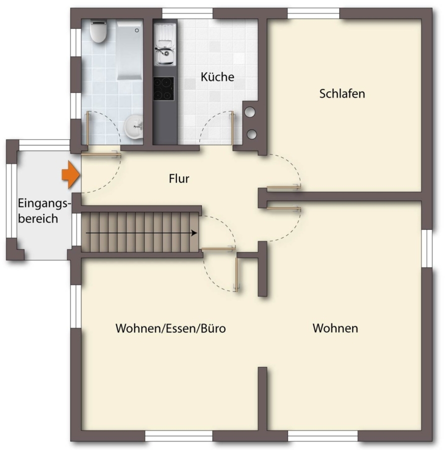 Flur, Bad, Küche, Schlafzimmer, Doppelwohnzimmer